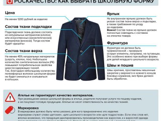 Роскачество совместно с Минпромторгом России к началу сезона продаж школьной формы провели исследование, а также дали детальные рекомендации по выбору качественной одежды для школьников. Эксперты рассказали, на что обратить внимание родителям при покупке, сколько должна стоить качественная форма, а также на что нужно обратить внимание при пошиве формы в ателье.
