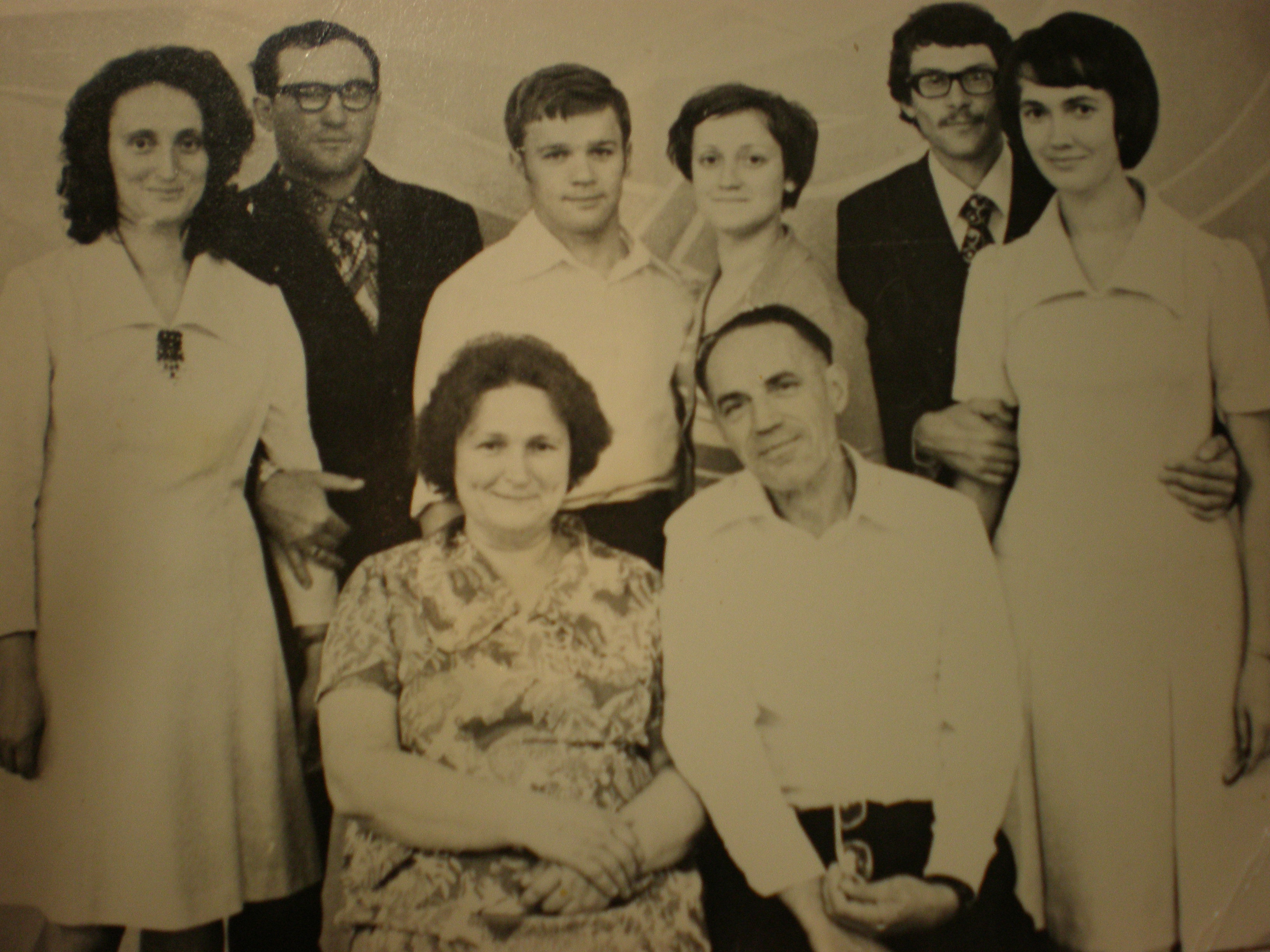 Дедушка, мамин отец, Воронин Митрофан Кондратьевич, наверняка гордился бы нашим семейным учительским сообществом. Он всю жизнь работал учителем начальных классов. На фото дедушка с бабушкой и их три дочери с мужьями, мама и папа в середине.