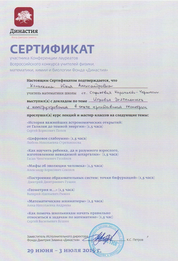 Конференция лауреатов Всероссийского конкурса учителей физики, математики, химии и биологии фонда Династия.