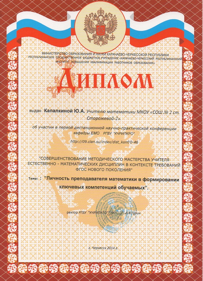 Первая дистанционная научно-практическая конференция кафедры ЕМО РГБУ КЧРИПКРО "Совершенстование методического мастерства естественно-математических дисциплин в контексте требований ФГОС нового поколения".