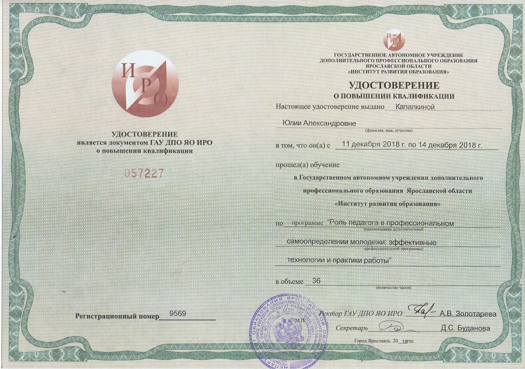 Роль педагога в профессиональном самоопределении молодёжи: эффективные технологии и практики работы (36 часов) . ГАУ ДПО Ярославской области "Институт развития образования", г. Ярославль