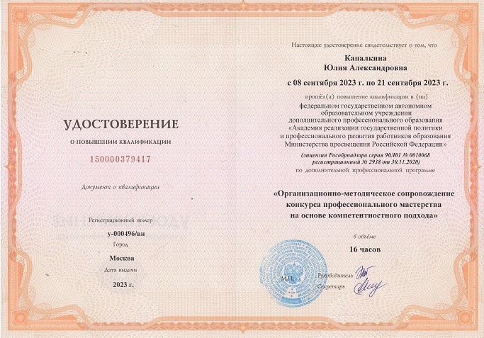 Организационно-методическое сопровождение конкурса профессионального мастерства на основе компетентностного подхода. Академия реализации государственной политики и профессионального развития работников образования Министерства просвещения Россиской Федерации, 16 часов