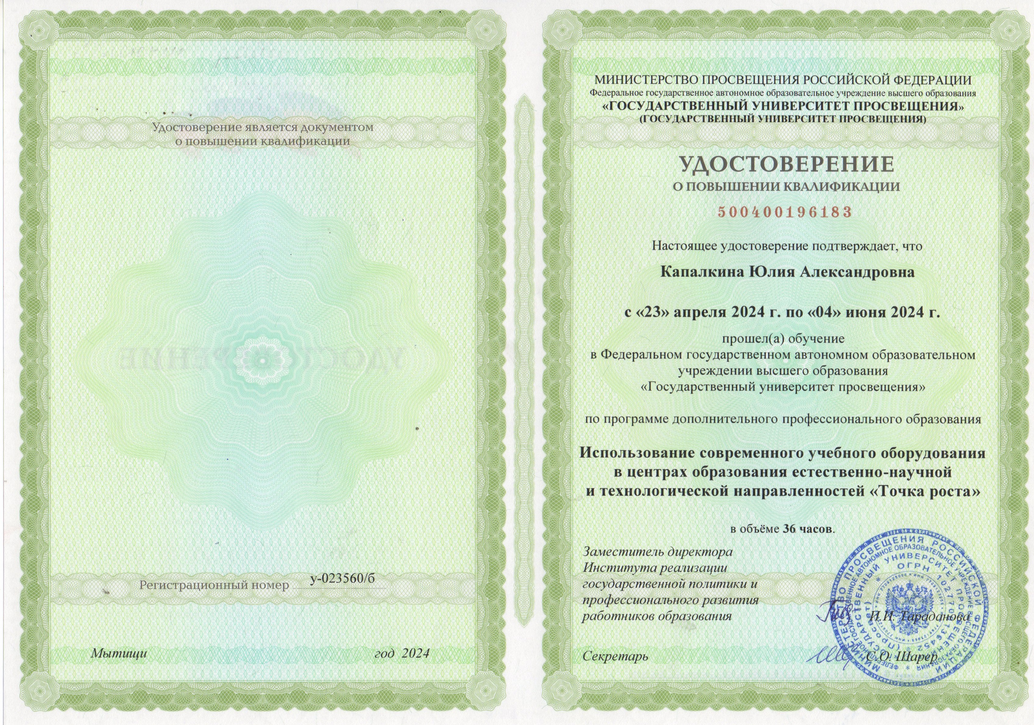 Использование современного учебного оборудования в центрах образования естественно-научной и технологической направленностей "Точка роста", 36 часов, ГУП, Москва