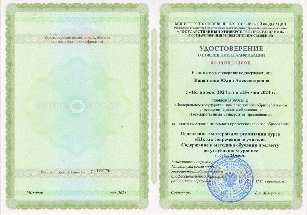 Подготовка тьюторов для реализации курса "Школа современного учителя. Содержание и методика обучения предмету на углубленном уровне", 24 часа, ГУП. Москва