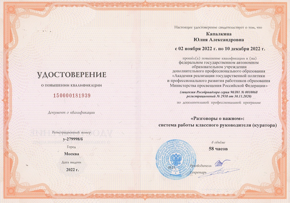 Разговоры о важном: система работы классного руководителя (куратора). Москва, 58 часов