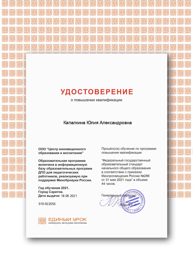 Федеральный государственный образовательный стандарт начального общего образования в соответствии с приказом Минпросвещения России№ 286 от 31 мая 2021 года, 44 часа