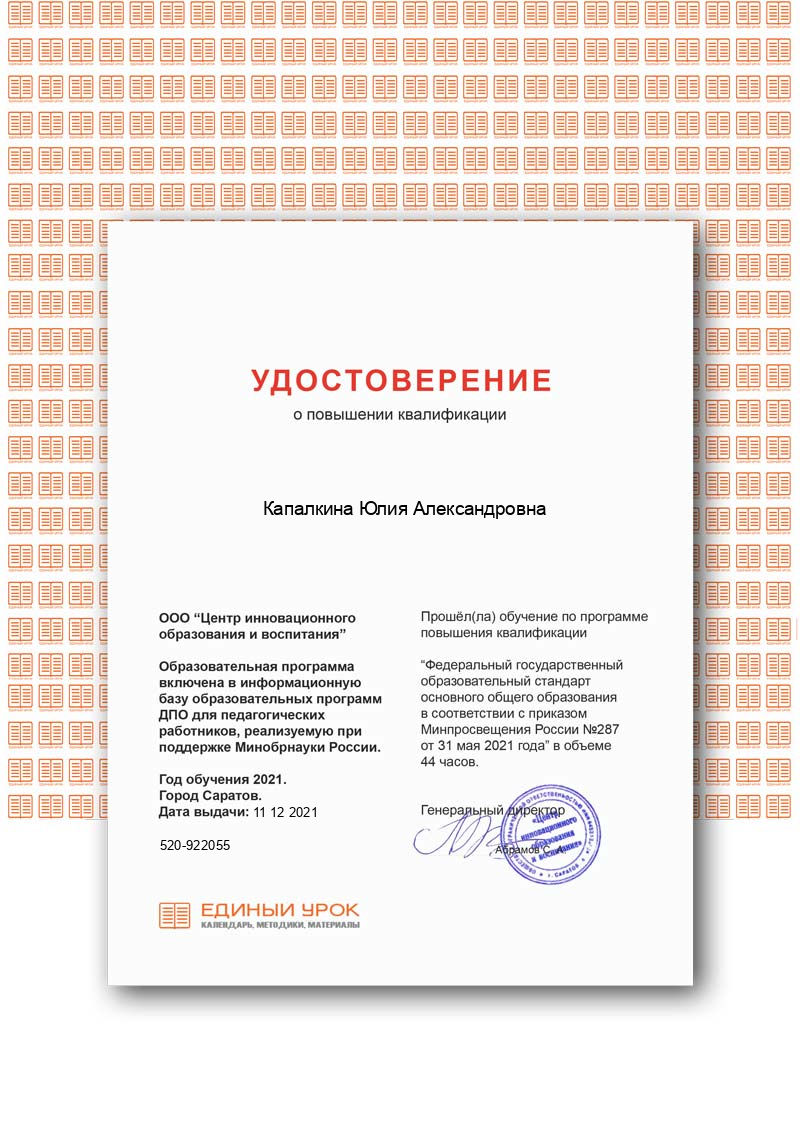 Федеральный государственный образовательный стандарт основного общего образования в соответствии с приказом Минпросвещения России №287 от 31 мая 2021 года, 44 часа