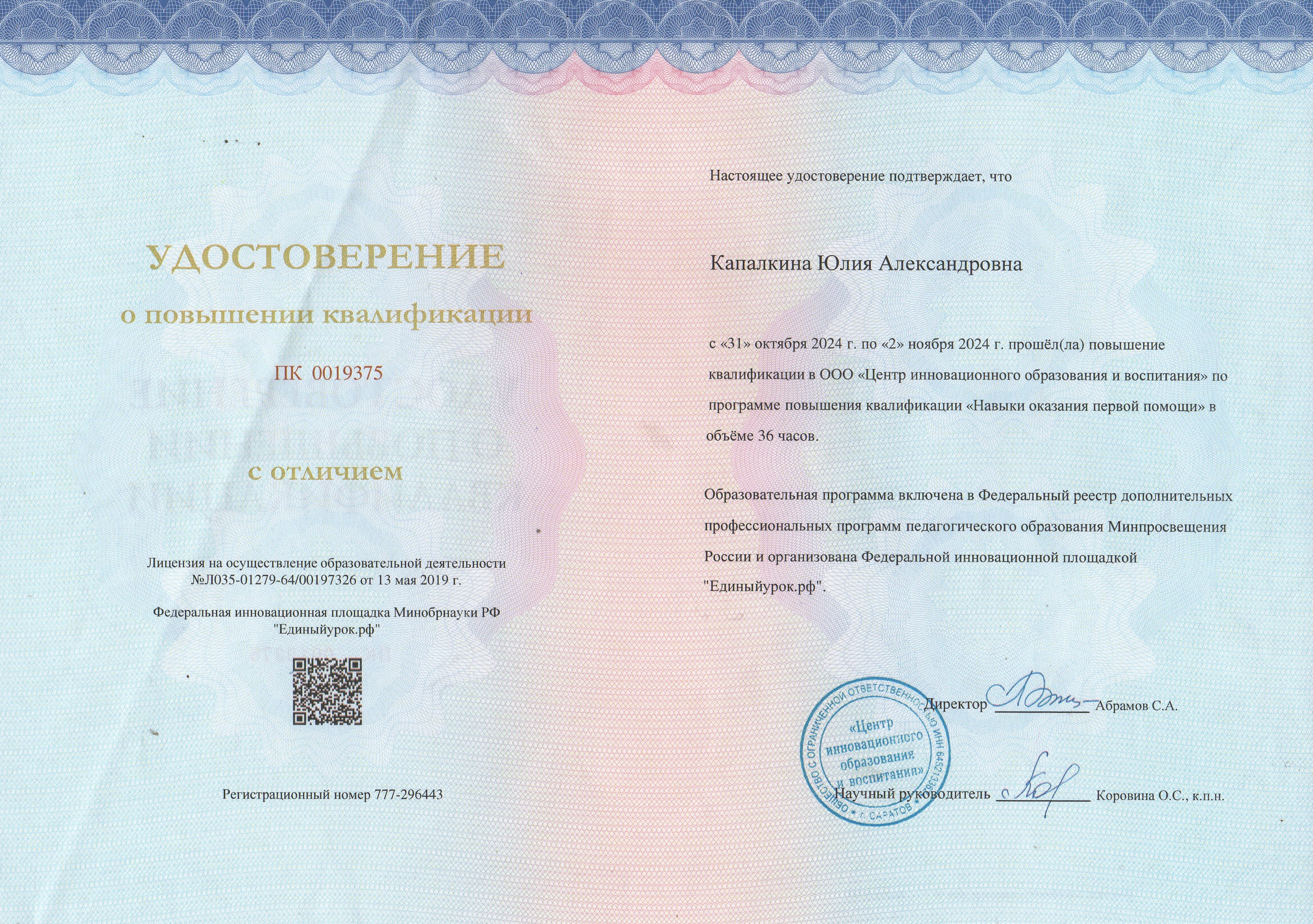 Навыки оказания первой помощи в образовательных организациях (36 часов)