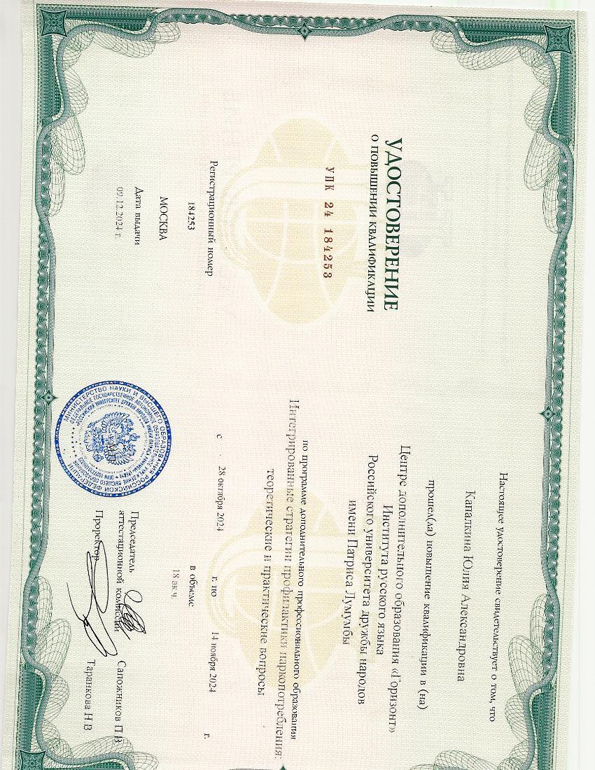 Интегрированные стратегии профилактики наркопотребления: теоретические и практические вопросы, ЦДО "Горизонт" Института русского языка РУДН им.Патриса Лумумбы, 18 часов