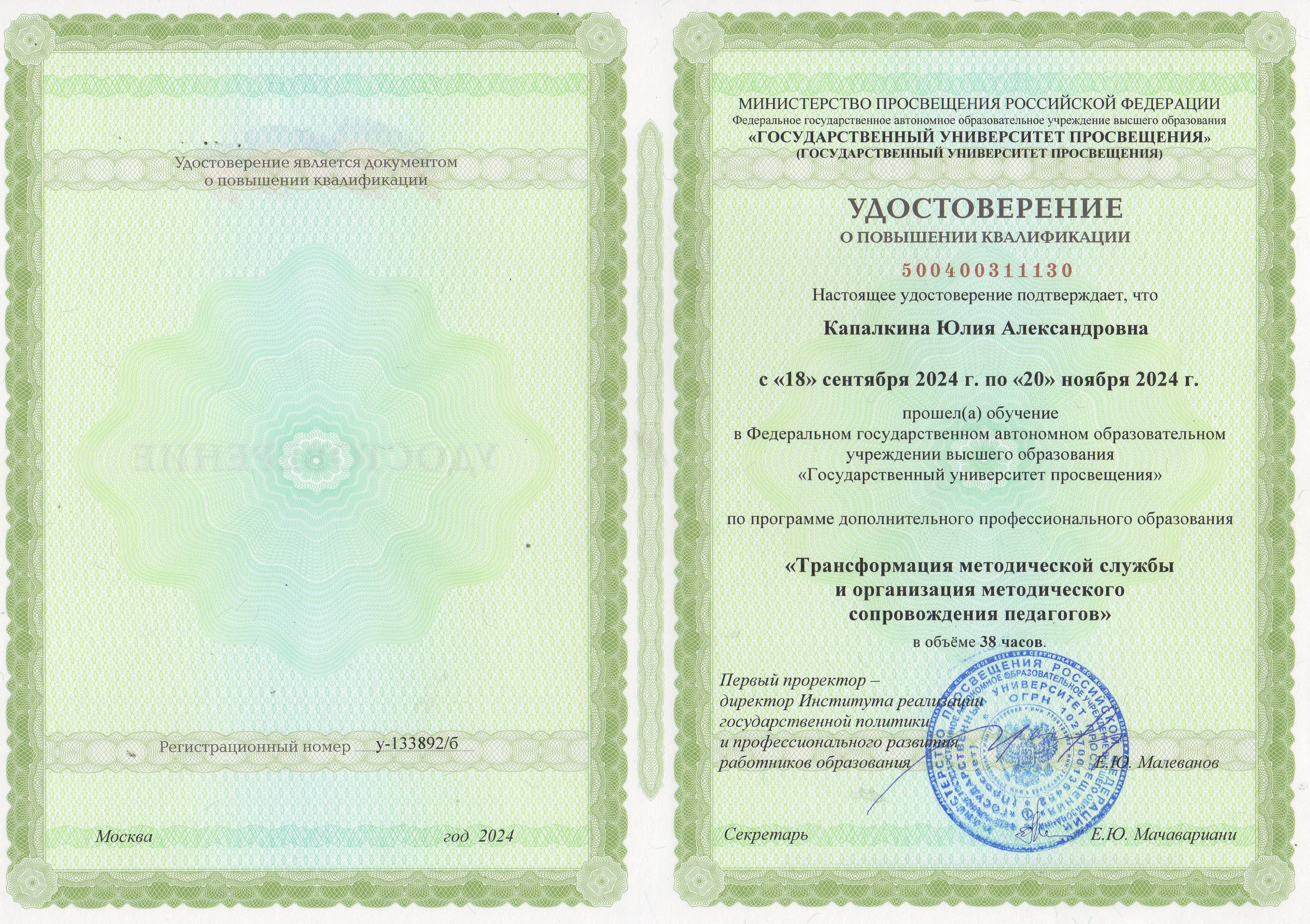 Трансформация методической службы и организация методического сопровождения педагогов, ГУП, 38 часов