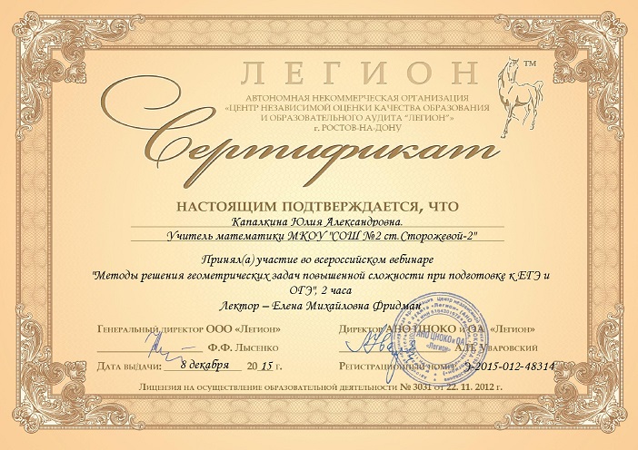 Организатор: АНО «Центр независимой оценки качества образования и образовательного аудита «Легион»», г.Ростов-на-Дону